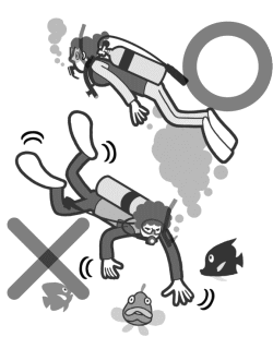 When underwater, pay attention to depth, time, air volume, and your buddy's behavior.