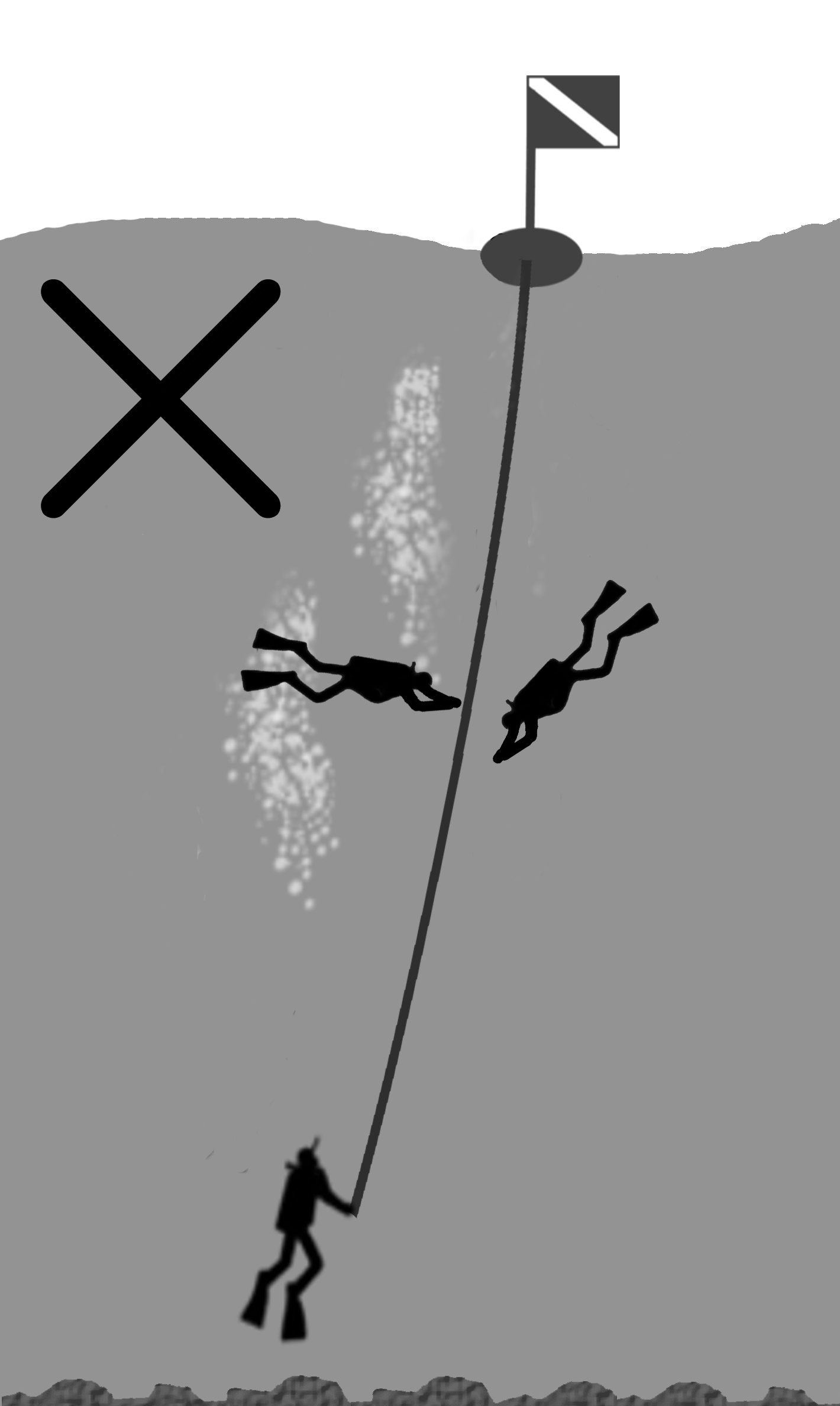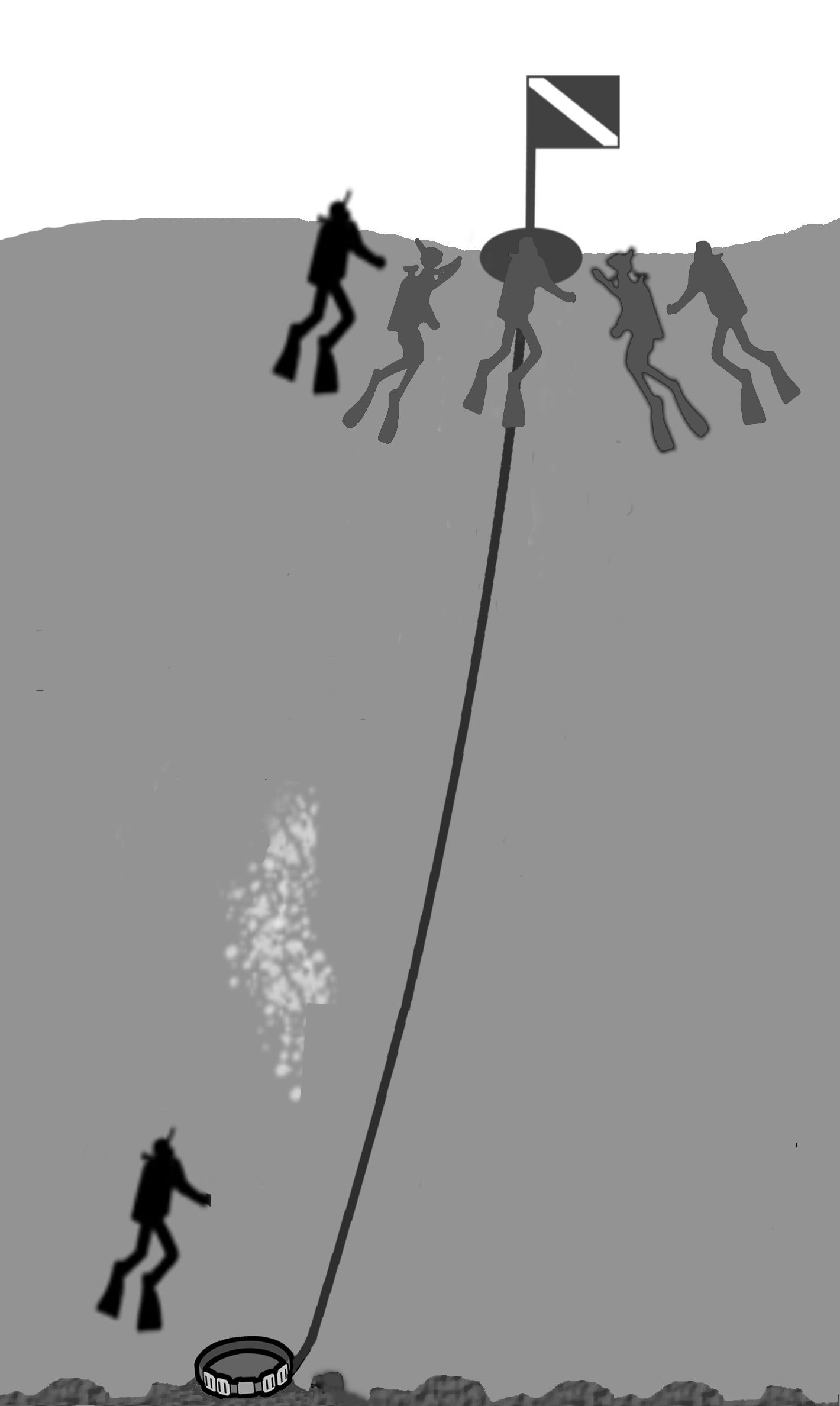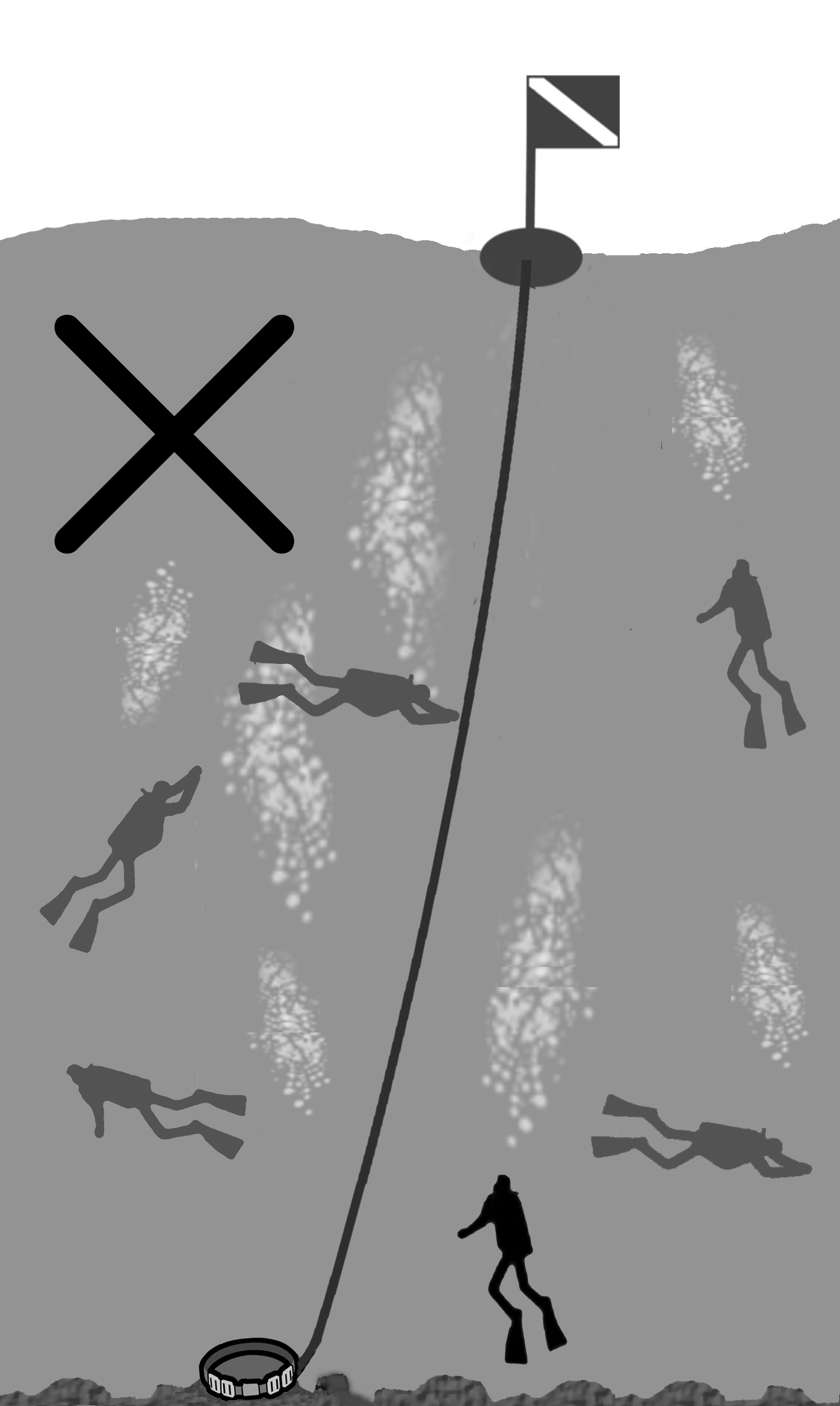 The area around the sinker, which is securing the descent line to the seafloor, will serve as the assembly point.