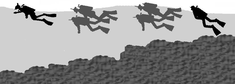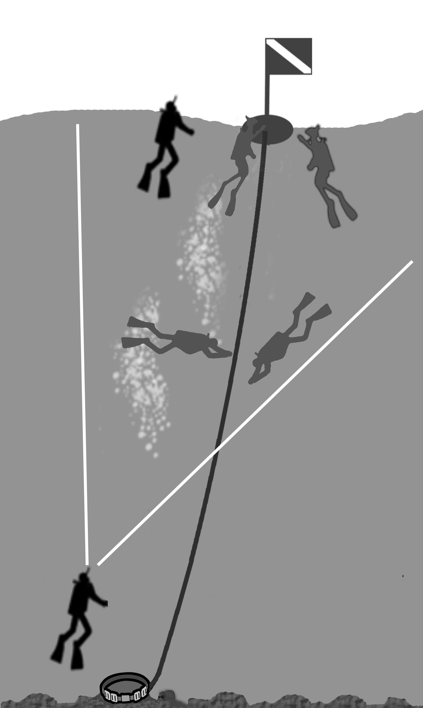 The leader should descend first and, upon reaching the assembly point, confirm the safety of the seafloor.
