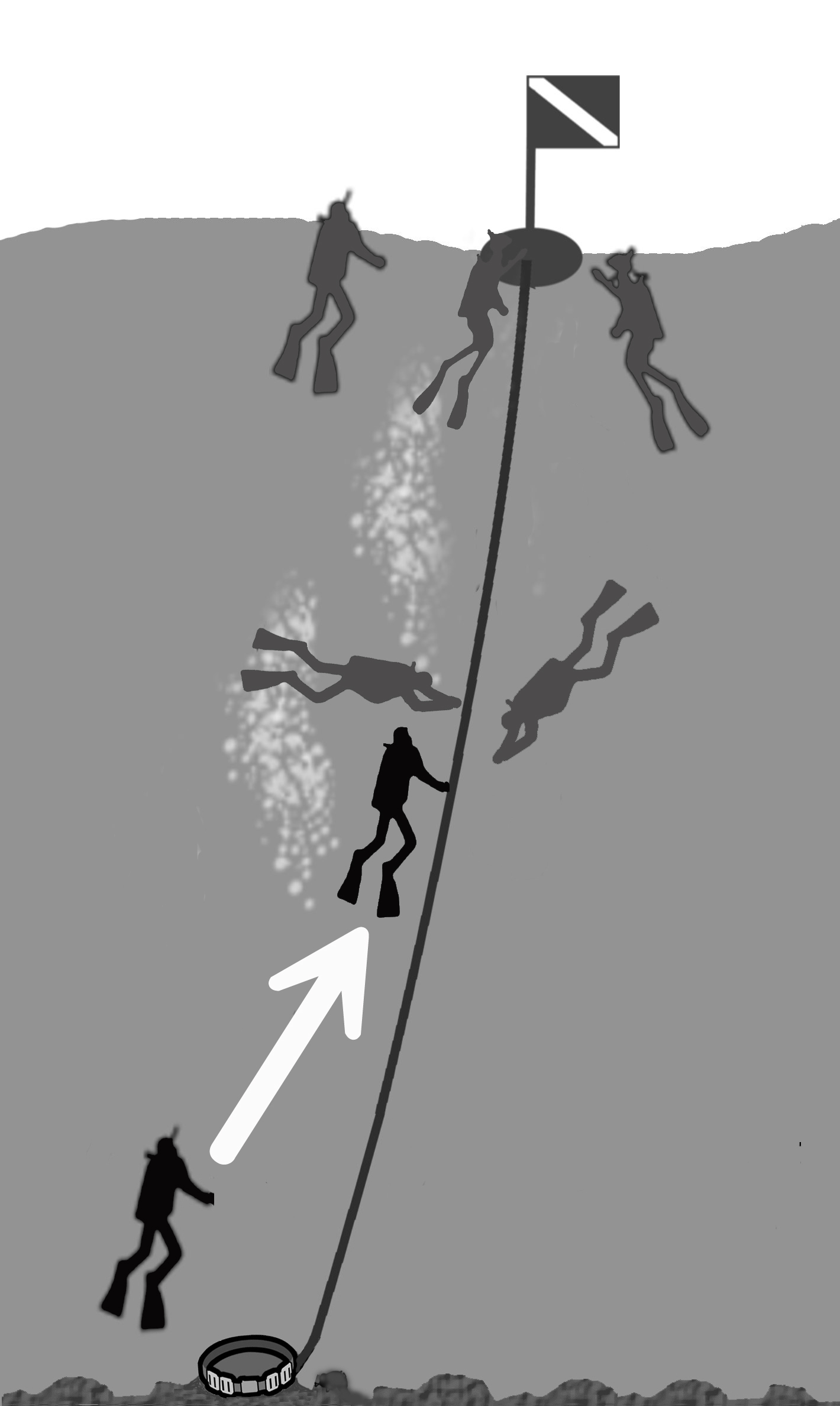 Always observe the diver at the surface from the seafloor.