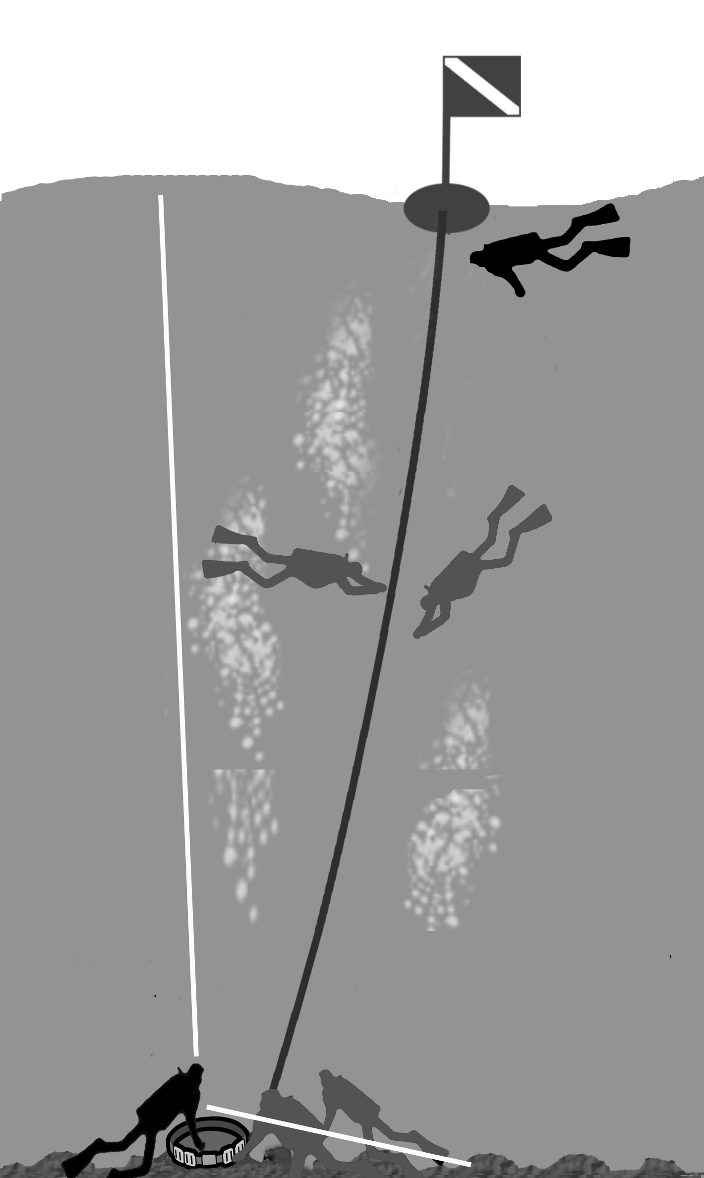 If a surface float is not available, use the leader on the seabed as a gathering point and follow the same descent procedure as when using a surface float.