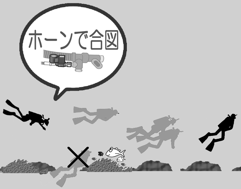 The leader at the front or the assistant at the rear should conduct a headcount of all participants. In case buddies become separated or there is trouble, use underwater horns or similar devices to signal everyone.