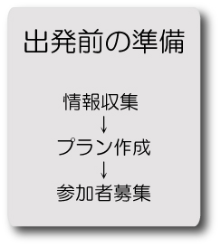 講習の準備は、情報収集→プラン作成→参加者募集の順番で行います。