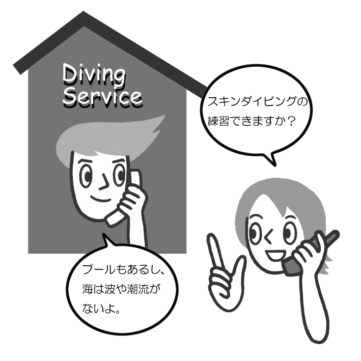 特に、スノーケリング講習、スキンダイビング講習、体験ダイビングは、プールやコンファインドウォーター(限定水域)で行いましょう。