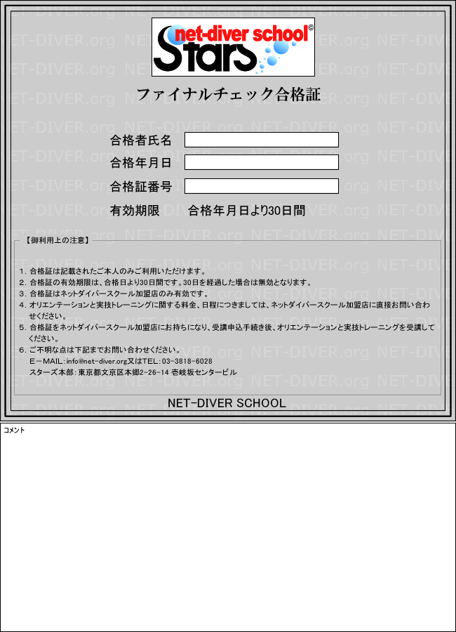 エントリーダイバーコースの講習前に必ず合格証を確認しよう。
