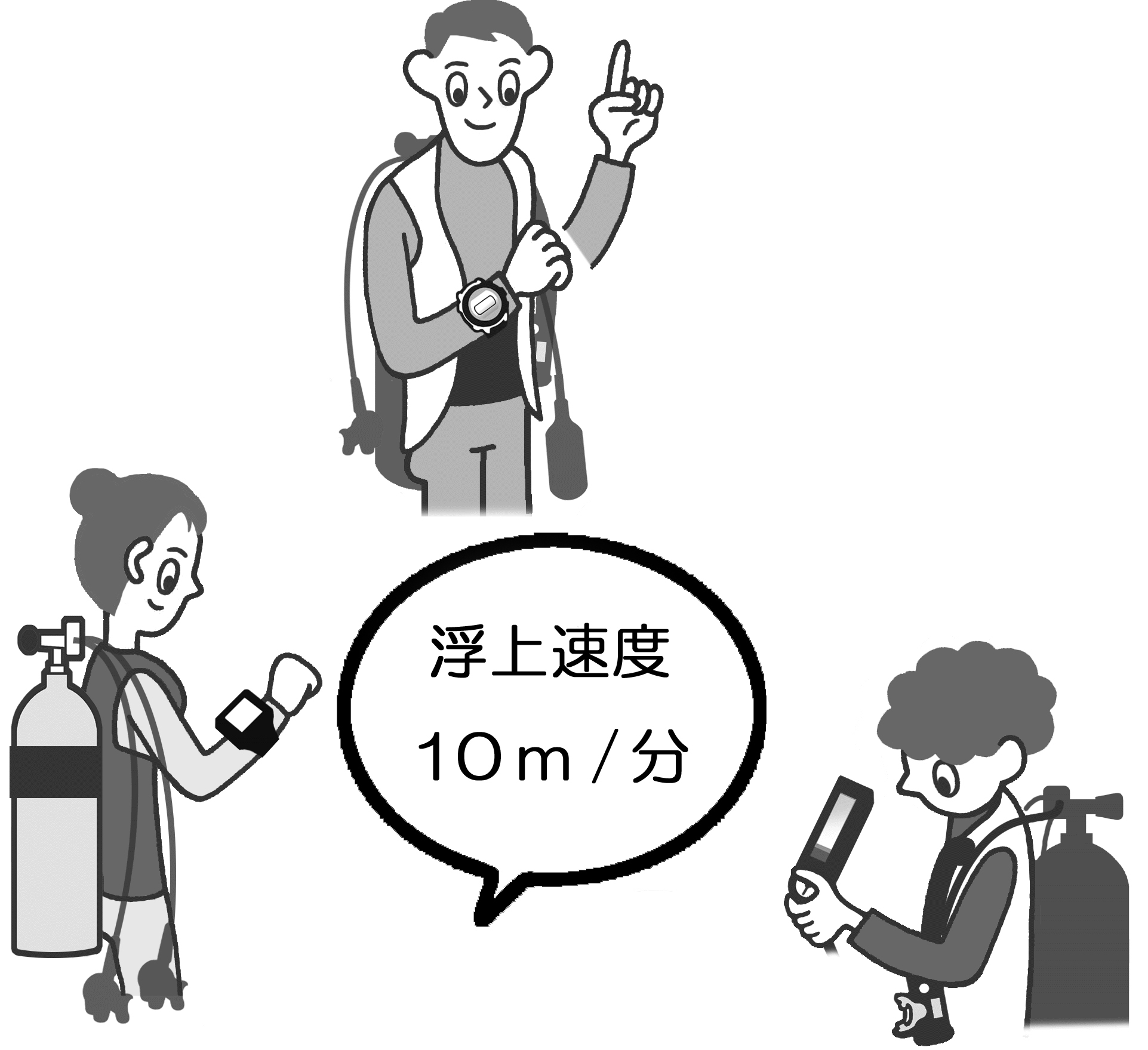 ⑨全員が同じ浮上速度で浮上することを受講生に伝えましょう。