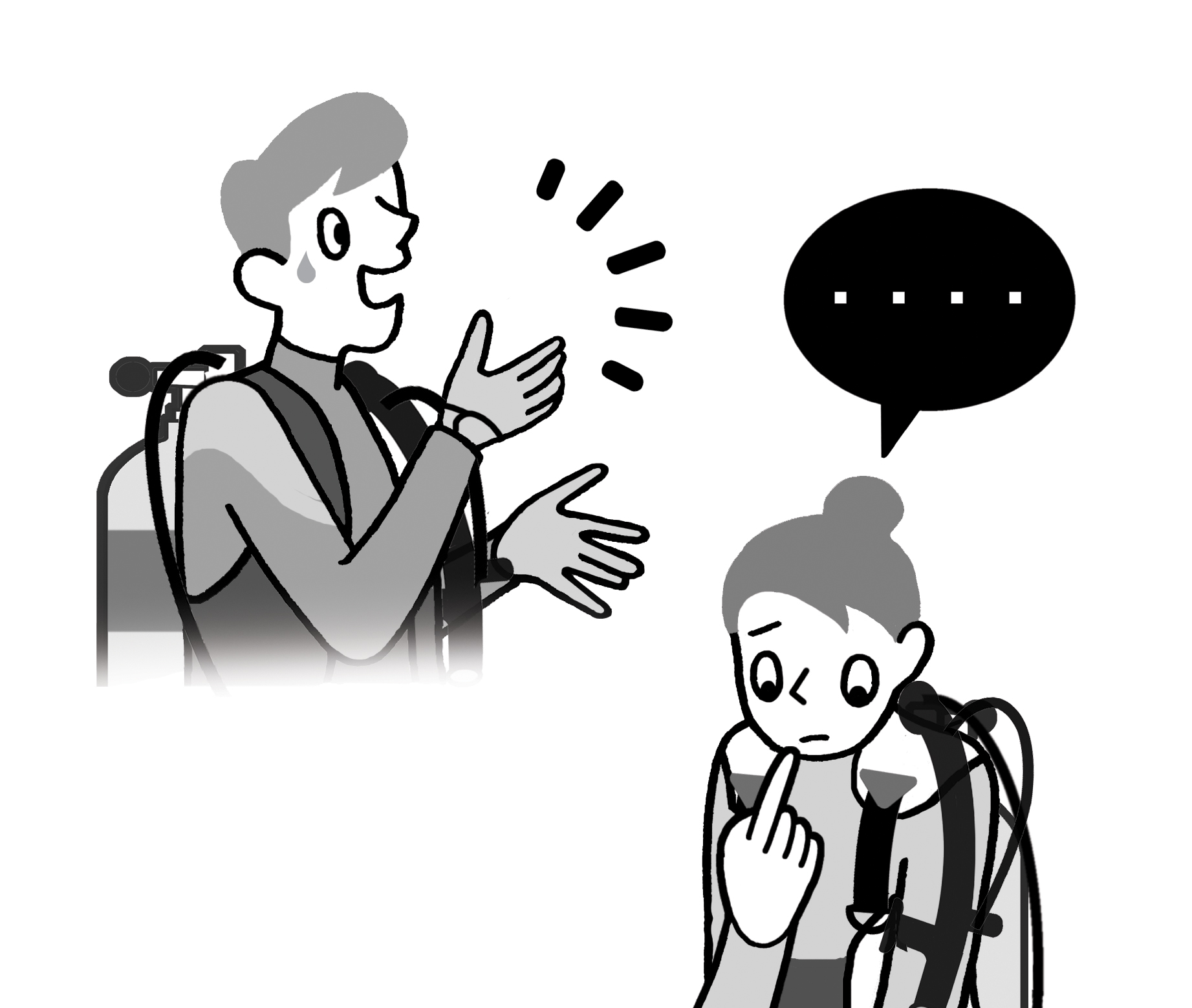 ⑤全員のダイビング前の行動を観察したり、不安感を取り除くようにやさしく話しかけましょう。