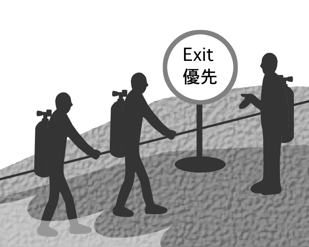 インストラクターは先に潜降し集合場所に着いたら、海底の安全を確認しましょう。