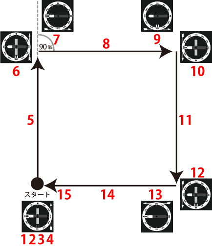 Make sure that the north side of the magnetic needle does not deviate from between the index marks, and move straight 10 steps (kick) toward the rubber line to stop.
