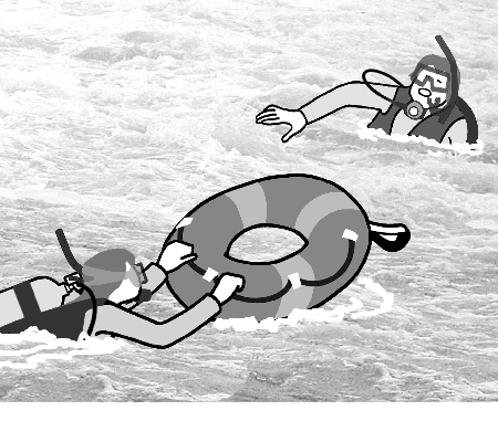 - Tell loudly that you will throw the lifebuoy, and throw it.