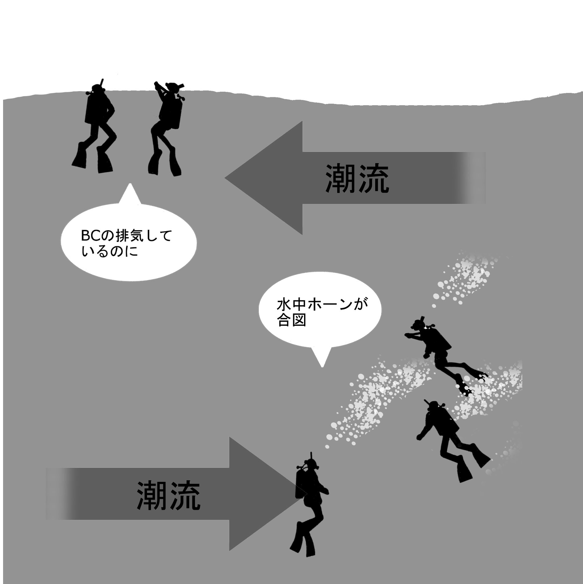 After confirming that there is no abnormality about the entire group on the water surface, discharge the BC simultaneously for the entire group.