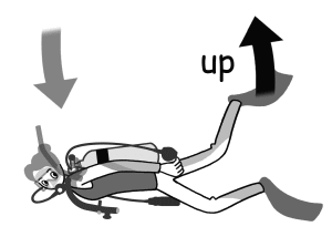 When using fins, a diver move the fins down ↓ and up ↑ alternately and proceed.