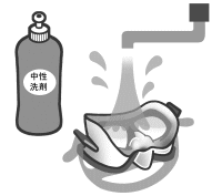New masks have a protective oil film on the lenses that, if left on, cause masks to fog. It is important to wash with a non-abrasive detergent before use.