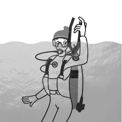 Put on the inner suit and dry suit, press the exhaust button, and bleed the air inside the dry suit.