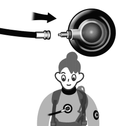 Connect the medium pressure hose to the air supply valve of the dry suit. |
