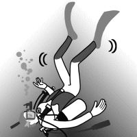 If you lose control of your buoyancy due to a handstand posture in the water, quickly roll your body small and be in a vertical position. |
