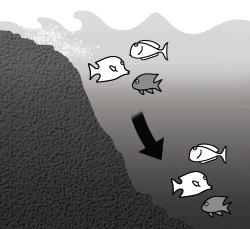 When a large amount of fresh water flows into the river after heavy rain, the fish living in the downstream area move to the offshore where the salinity changes little. |