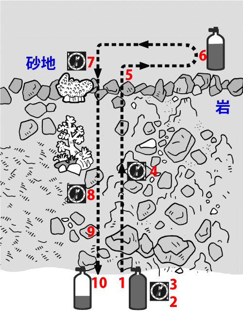 If you come to a place where there is a large change in the topography, such as the boundary between the rock and the sand, change the direction and proceed along the boundary.