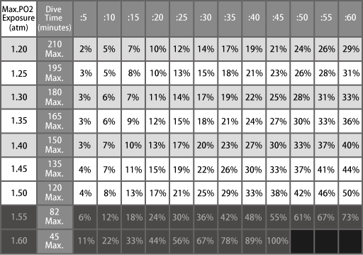 Oxygen ratio exposure table