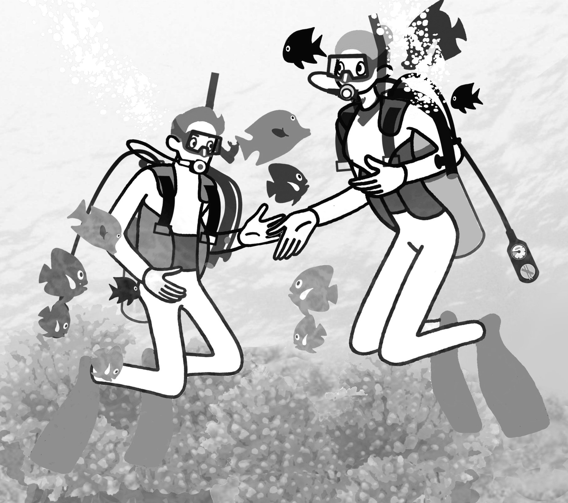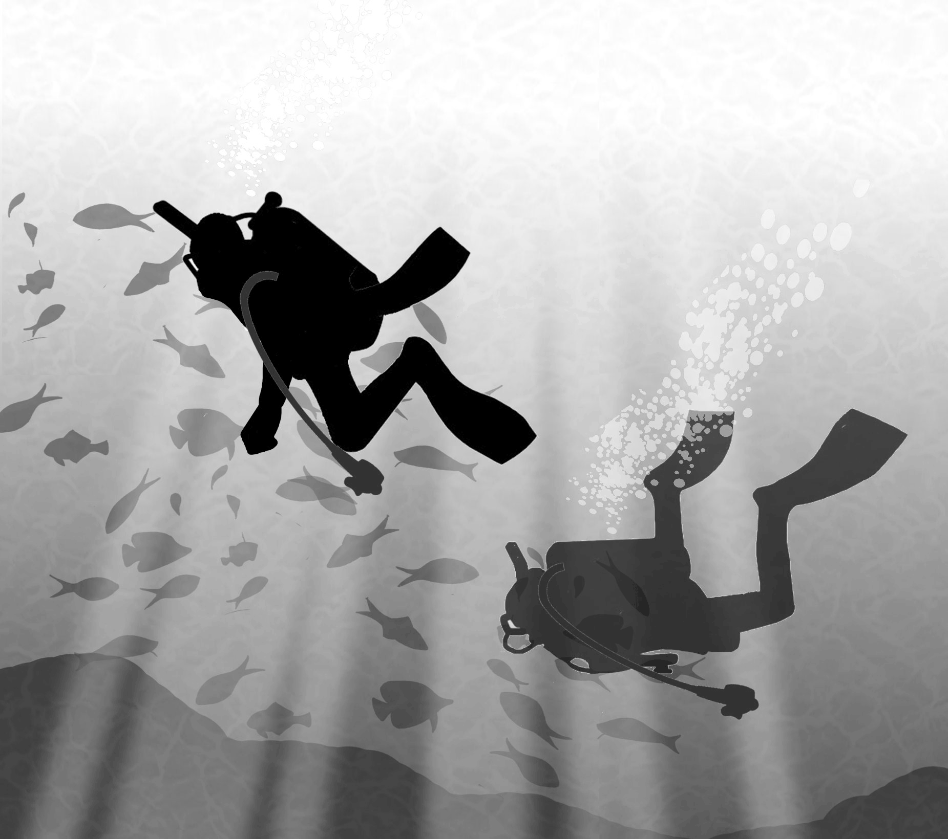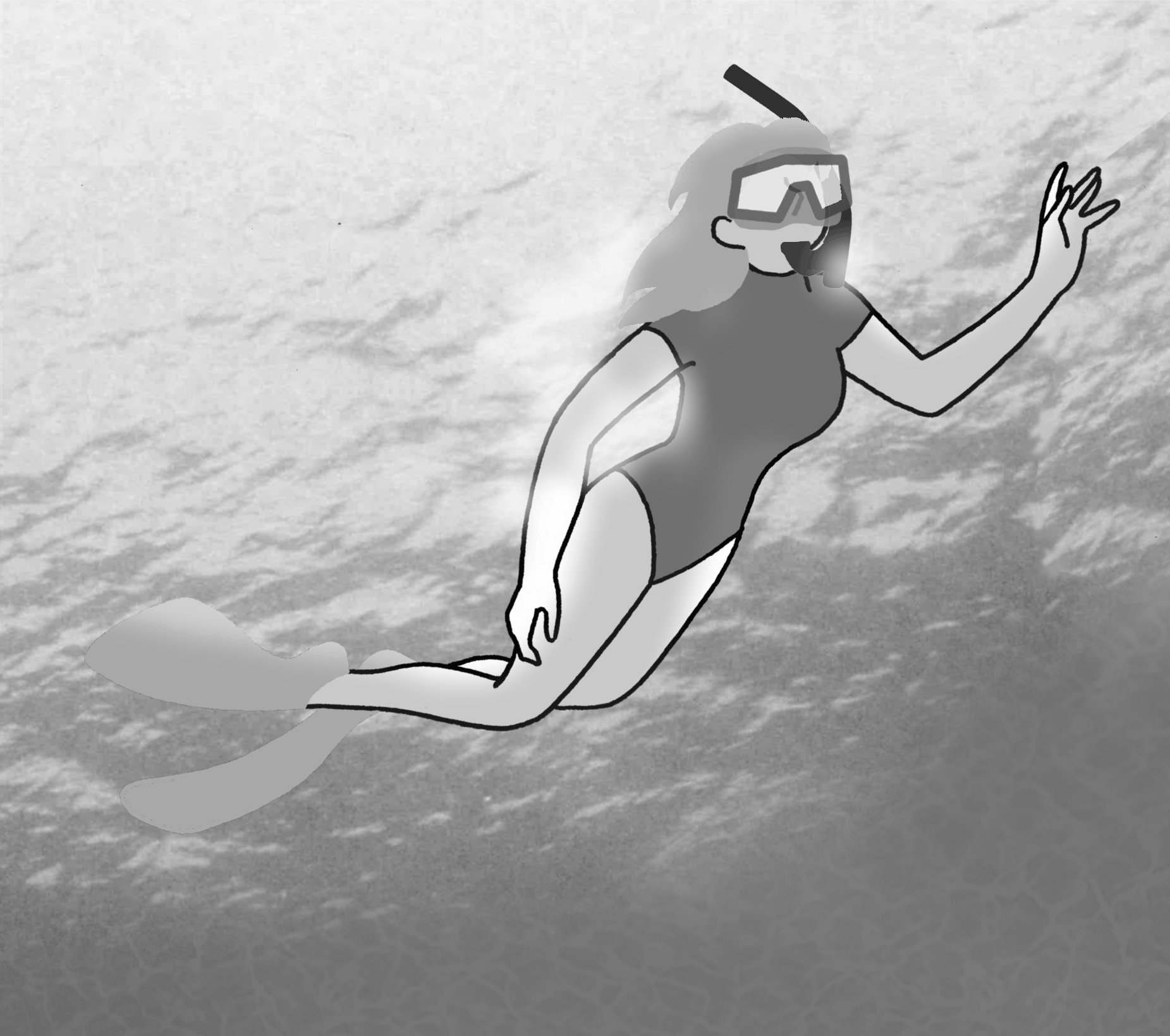 If you take a picture of the diver floating in the middle from the sea floor, you can shoot the silhouette of the diver in the sunlight.