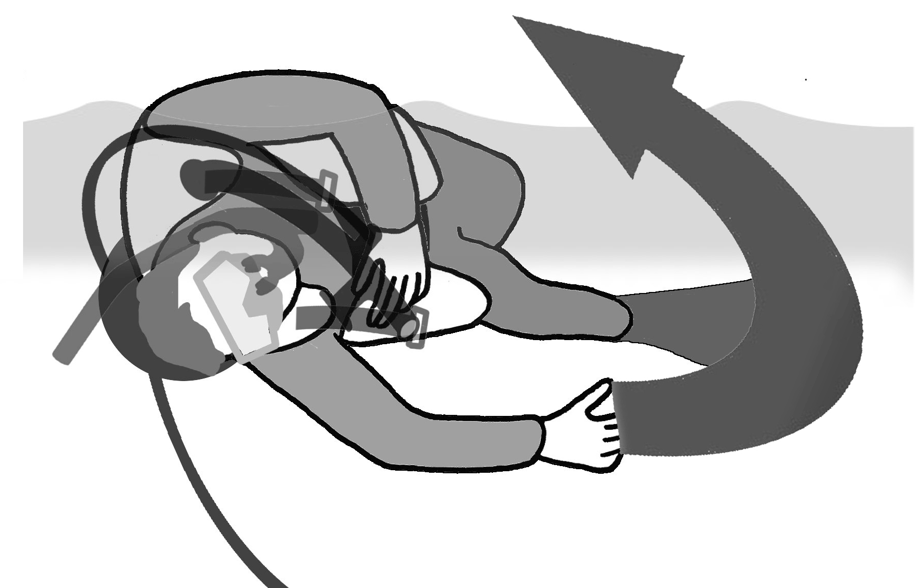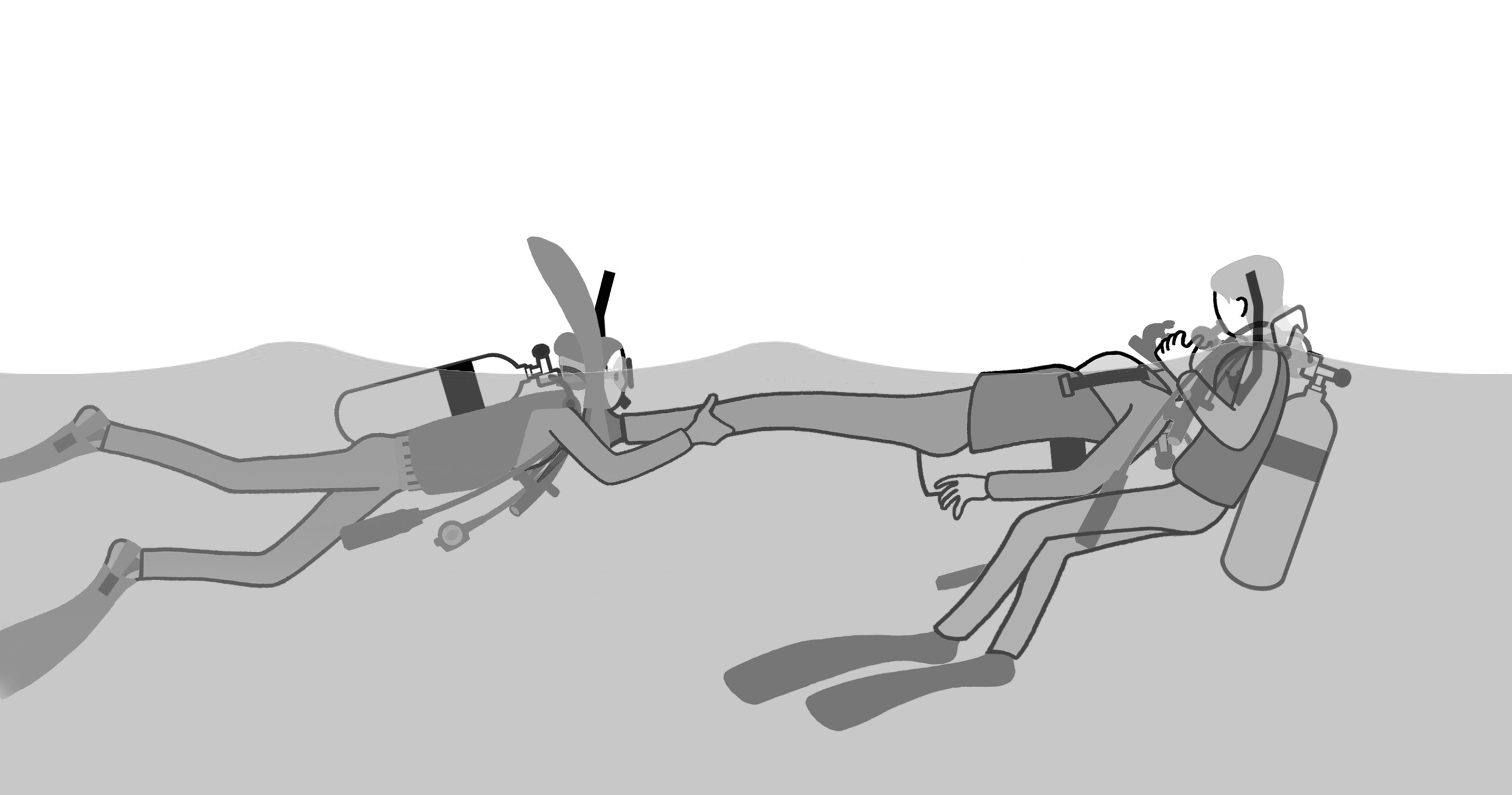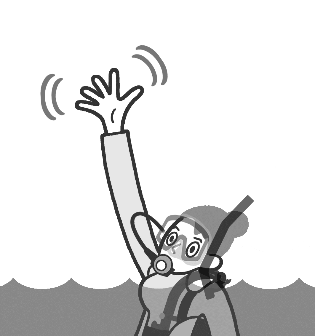 In order to prevent secondary disasters, you will keep a safe ascent speed and ascend to the water surface with the diver. |